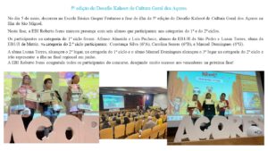 No âmbito da Estratégia da Educação para a Cidadania, através da disciplina de EMRC, e à semelhança do que aconteceu na Escola Básica Roberto Ivens, também nas escolas do Primeiro Ciclo decorreu, entre os dias 8 e 14 de novembro, o concurso “Doces Culturais”.